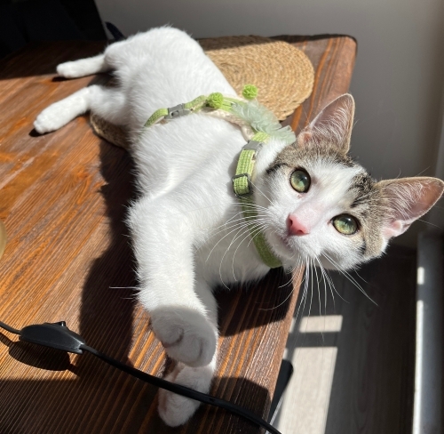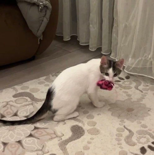 Birkaç aylıkken sokakta ağlarken bulmuştum, tedavisini yaptırdım. Çok küçük olduğu için de adını Cafer koydum. Öğrenciyim evde benimle kalıyor ama yazın evime döneceğim için Haziran’a kadar yuva bulamazsam sokağa bırakmak zorunda kalacağım. Çok çok oyuncu, sevgi dolu bir kedi. Diğer kedilerle oynamak için can atıyor. Adına duyarlı. Öğreten olursa numaralar bile öğrenebileceğini düşünüyorum. Dışarıya bırakmaya içim elvermiyor ama mecbur kaldım. Güzel bir yuvası olsun çok isterim💗