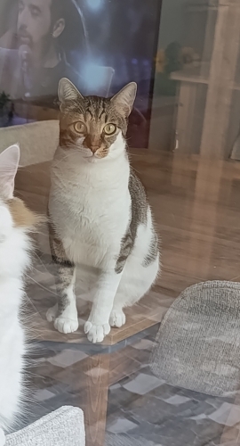 1 yaşında,erkek.Kısırlaştırıldı.Kum eğitimi var.Yabancılara karşı ürkek ama alıştıktan sonra çok sevgi dolu,oyuncu ve çok konuşkan bir kedi...Birlikte uyumayı çok sever.Zamanının bir kısmını kendi kuyruğunu kovalayarak geçirir.Çok sayıda kedimiz olduğu için sahiplendirmek istiyoruz.