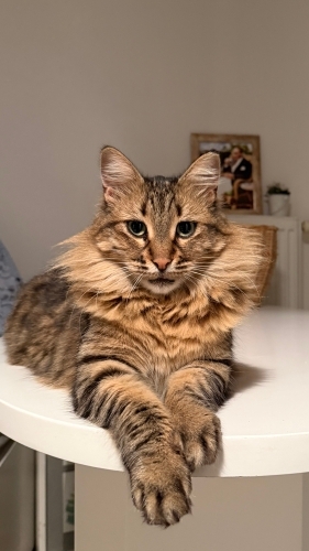 Evimde geçici olarak bakıyorum , farklı kedilerim olduğundan ve sayıca çok olduğundan o da holde kalıyor . Kendi halinde bir çocuk , aciliyetiniz yok doğru yuva onu bir daha terketmeyecek ailesini arıyoruz .