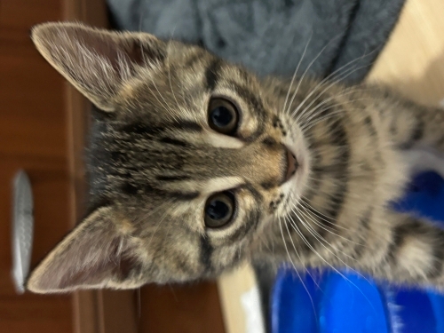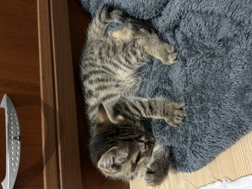 Bu minik tekir yavru, sevgi dolu bir yuva arıyor 🐾 Brown Tabby Domestic Shorthair cinsi (melez ev kedisi) olan yavrumuz sağlıklı, oyuncu ve insanlara alışkın.