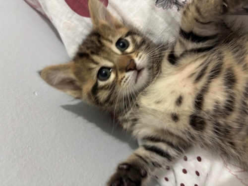 Ev ortamında büyüdü, oldukça uysal ve sevecen. Yaşına uygun şekilde mama yemeye başlamış durumda yavrumuz 1 ay 10 günlüktür .