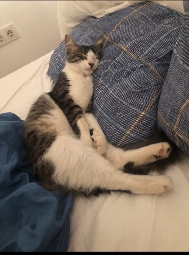 Kalabalık bir ortamda olduğu için sahiplendiriliyor çok sevecen akıllı tontik bir kedi