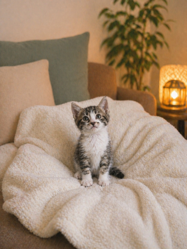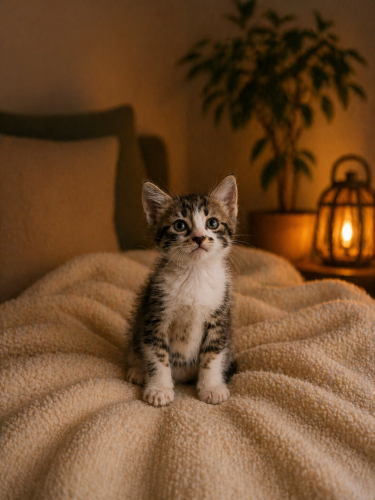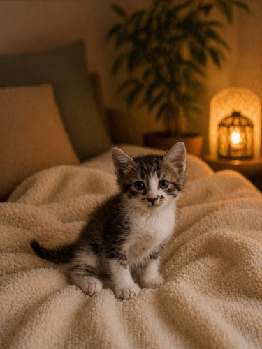 45 günlük minicik erkek bebek. Kuru mama yiyor, kum eğitimi var. Anne sütüyle büyüdü ve hiç sokak görmedi.