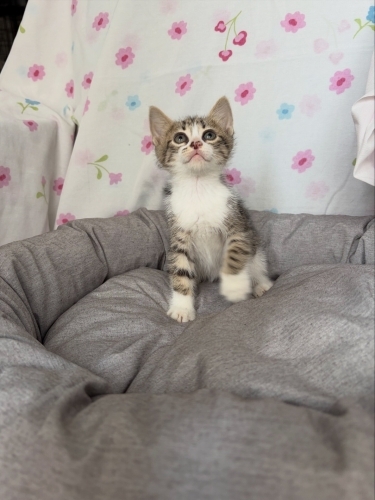 45 günlük minicik erkek bebek. Kuru mama yiyor, kum eğitimi var. Anne sütüyle büyüdü ve hiç sokak görmedi.