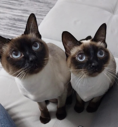 Sağdaki dişi soldaki erkek 2-3 yaş arası, kısırlaştırılmış, çipli güzel siyamlara ömürlük yuva aranıyor. İzmit Kocaeli