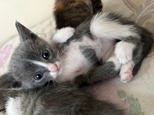 Bahçemde baktığım kedilerden biri doğum yaptı, yavruları ve anneyi eve aldım ancak evimde de kediler olduğundan rahat vermiyorlar ve çevreden de şikayetler alıyorum. Bebekler çok sevimliler, kum eğitimlerini verdim, yaş ve kuru mama yiyebiliyorlar, şu an yaşları gereği oyuncular, onları bir haftaya sahiplendirebilirim, daha az stresli bir yuva onlara da çok iyi gelecek. Dış parazit yapacağım. Sarman ve gri olanlar erkek, 3 renkli bebek dişi