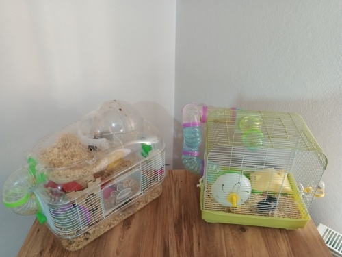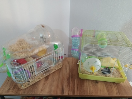 İki adet Gonzales Hamter iki erkek diye aldık minik pandanardan birisi dişi çıktı ayrı kafeslerde yaşamlarına devam ettirdik. Tüm kafes ve aksesuarları uzun süre yetecek yem ve talaş ücretsiz olarak verilecektir.