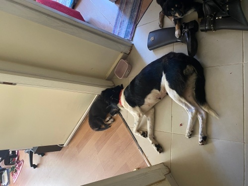 İstanbul Çekmeköy, çipli, kısırlaştırıldı, 14 aylık. 2 aylık 2 yavrusu var. Siyah beyaz, koşmayı ve suda oynamayı seviyor