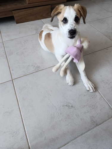 Yaklaşık 7 aylık sevimli ve cana yakın bir dişi yavru. Orta boy olacak. Evde büyüdüğü için insanlara alışık, oyuncu ve sevgi dolu bir karakteri var. Tuvalet alışkanlığı kazanmaya başladı, bakımı kolay.