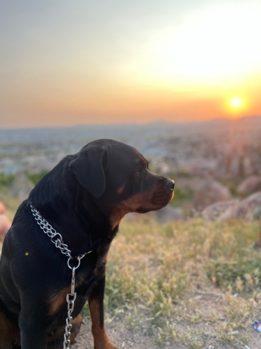 İstanbul Beylikdüzü’ndeyiz. Kızım ev ortamında büyümüş, safkan bir rottweiler’dır. Yabancılara karşı korumacı ve tetiktedir, fakat ev halkına karşı tam anlamıyla bir bebek gibi şefkatli, sevecen ve bağlıdır. Kısır değildir; bir gün torunlarını da görürüm umuduyla kısırlaştırmamıştım. Ancak sahiplendirme şartım, mutlaka kısırlaştırılmasıdır.