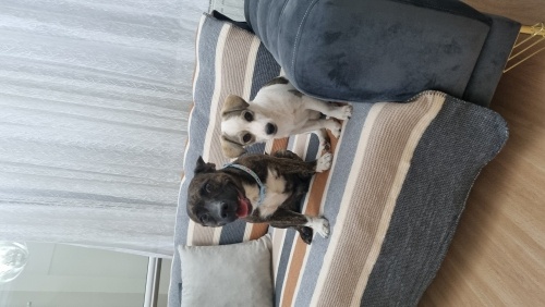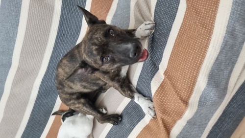 1,5 yaşında erkek.staffordshire bull terrier, Amerikan Pitbull Teriyer melezi, brindle desenli, kısır, İç dış parazit aşısı, karma aşısını yaptırdım Çipi yok, sokağa bırakılmış. İzmir Buca'dayuz. İl içi yuvalandırmak istiyoruz. Bahçeli bir evde daha rahat bakılabilir diye düşünüyoruz. 22 yaş üzeri düzeni oturmuş kişilere- ailelere ücret talebi olmadan yuvalandırılacaktır.