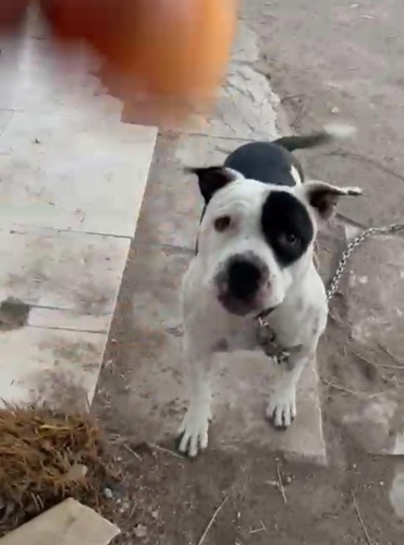 3 yıl önce sahiplendirilmişti ama barınağa düşmüş gidip alındı ama zincire bağlı yaşıyor. Daha önce şiddet gördüğü için tramvalı bahçeli bir ev onun için ideal onu tekrar terk etmeyecek yeni ailesini arıyor.