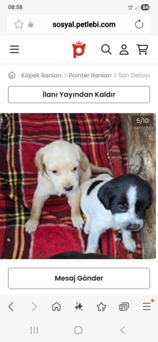 2 aylik pointer melez yavru 4 tane yavru kardeşler. 3 dişi 1 erkek. Anne yi av olarak kullanıp sonra hamile kalinca terk ediyorlar. Bu bebekler bol bol anne sütü içdiler çok saglikli ve koruma altinda. Iç diş parazit yapildi. Buyunce küçük orta boy olucakdir. Ücretsiz sahiplenme ömürlük yuva arıyoruz. Lütfen küçük çocuklu ailelere anne veya baba iletişime geçsin. NOT: ASLA AV YAPAN KIŞILERE SAHİPLENME YAPMIYORUZ...