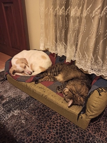 İlk bulduğum zamanın fotoları ve son halini ekledim. Dilerseniz nasıl yol katettiğini, hayata nasıl tutunduğunu görmeniz için videolarını da atarım. Kanatsız Melek Kaju. Dünya üzerinde yaşayan her şeyle anlaşır, kedi köpek çocuk. Antalyada bir ağaca bağlı bulundu. Sahibi olacak ş. Vermedi ama bir şekilde ikna edip aldık. 8 hafta hastanede kaldı/ Bir yaşam alanında aylarca kaldı yine de çoook mutluydu/ Sonra sahiplendiler ve bebekleri oldu diye pat diye bana geri verdiler. Nasıl koyayım yaşam alanına sıcak koltukta uyumaya alışan bu kızı? Ona ÖMÜRLÜK yuvasını arıyorum. Evimde 3 köpek 6 kedi var şu an ve gerçekten çok zorlanıyorum.