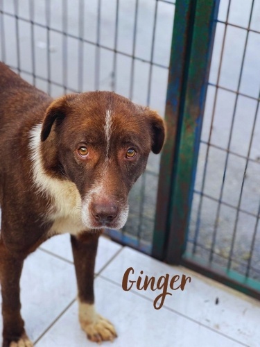 Ginger, muhtemelen bir retriever ve terrier karışımı bir köpek.