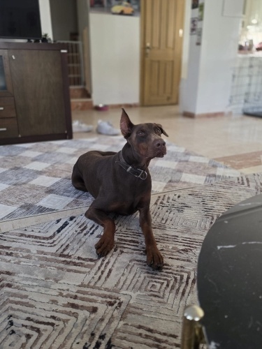 2 yasinda Doberman,Erkek Kisir Her köpekle anlasir Ev egetimli Asilari tam Cok uysal sevimli ev içine takip şartıyla sahiplendirilcektir 05055626748