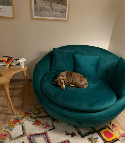 Nala 2024 yılında, İngiltere’de şiddet gördüğü bir barınaktan kurtarılmadan önce çiftleştirme için kullanılan bir kızdı. Birçok kez terk edilmiş olup, yavrularından erken ayrılmak zorunda bırakılan bir kızdı. Kurtarıldığı günün akşamı hemen yerini sahiplenen, sevgisini gösteren bir kız oldu. Yaşadığı travmalar onu derinden etkiledi, Nala alıştıktan sonra bağlandığı, spesifik olarak bir, kişiye karşı çok daha düşkün oluyor. Bir sürü kişiyi sevebiliyor ve birlikte kalıyor olsa da sahibine karşı geliştirebileceği sevgi kelimelerle anlatılamaz. Çok terk edilmiş olduğu ve yaşadığı travmalar sonucu Nala bir ayrılık anksiyetesi geliştirmiş. Sevdiği annesi/babası evden gittiğinde ağlama eğiliminde. Bunu en çok onu barınaktan kurtaran annesine yaptı, ancak başka kişilerle samimi olduğunda, bu kişilerde ayrılık anksiyetesi belirtilerini bir süre sonra daha iyi atlattı. Nala ömürlük yuvasına alışma sürecinden sonra görebileceğiniz en sadık ve bağlı bir kız. Şu andaki annesinin ve anneannesinin sağlık sorunları sebebiyle ona yine güzel bir hayat sunacak, ona şefkatle yaklaşacak, anksiyetesini yenmesine yardımcı olacak tecrübeli, ömürlük bir aile arıyor. Şu anda misafirliğe gittiği evlerde başka köpeklerle sosyalleşmeyi daha iyi öğrenmek için tecrübeli bakıcılar ile vakit de geçiriyor, ve gerekli sabır ile sevgi gösterildiğinde tüm travmalarını aşarak olabilecek en iyi haline gelmesine yardımcı olacak, ömürlük yuvasını arıyor. Bahçelerde koşturmayı sevdiği kadar koltukta oturmayı daha da çok seven, oyuncaklarıyla kendi kendine oynamaya bayılan bir kız.