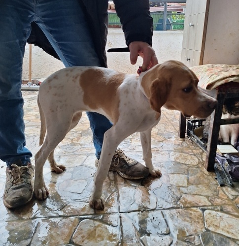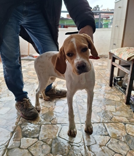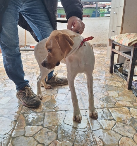 Saf kan İngiliz Pointer. 4 Şubatta 6 aylık olacak. Barınaktan sahiplendik, hasta olduğu için atmışlar, tedavilerini yaptırdık şimdi çok sağlıklı ama bazı sorunlarımızdan dolayı yeteri kadar ilgilenemiyoruz artık. Çipi takılı, aşılarının bir kısmı yapıldı daha devam ediyor. Çok hareketli, eğlenceli tam bir av köpeği. Zararsız ve sevgi dolu.