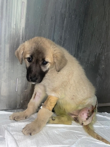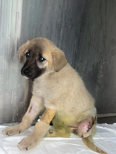 Henüz 3 aylık dişi bir yavru. Araba çarpması sonucu bir bacak ampute edilmek zorunda kaldı.‼️ 3 bacaklı özel ve çoookk güzel bir çocuk olacak. Büyük ırk olması muhtemel. Sağlık sorunu YOK.‼️ 3 bacağa alışma sürecinde ona hassasiyetle yaklaşacak ve bu özel çocuğu SEVGİ VE ŞEFKATİYLE SARMALAYARAK HAK EDECEK ömürlük meleği SEN OLUR MUSUN? İletişim tel:0552 392 8659 Yağmur Sıla hn