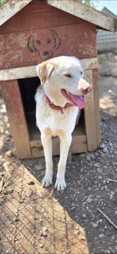 Bir kaç ay önce terkedilmiş halde bulduk. Erkek ve kısır. Tam bir bahçe koruma köpeği ama bir o kadar da insan delisi bir oğlan. Çok sevgi dolu, enerjik. Diğer köpeğin karakterine bağlı olarak başka köpeklerle de anlaşıyor. Kedilerle iletişimini bilmiyoruz.