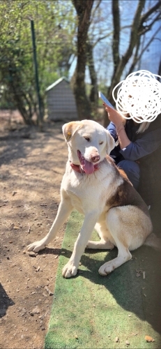 Melezdir. Bir kaç ay önce terkedilmiş halde bulduk. Erkek ve kısır. Tam bir bahçe koruma köpeği ama bir o kadar da insan delisi bir oğlan. Çok sevgi dolu, enerjik. Diğer köpeğin karakterine bağlı olarak başka köpeklerle de anlaşıyor. Kedilerle iletişimini bilmiyoruz.