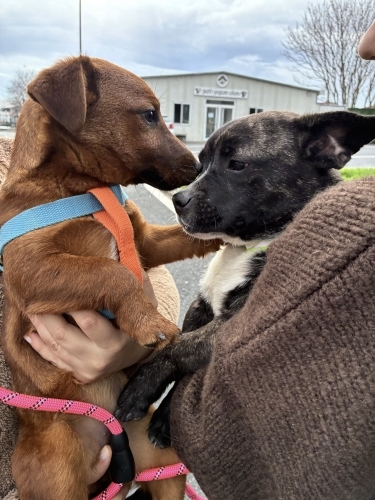 Kahverengi olan dişi Siyah (brindle) olan erkek Yaşları yaklaşık 2 yaş civarı Küçük boy Sağlıklılar, enerjik ve insan odaklılar