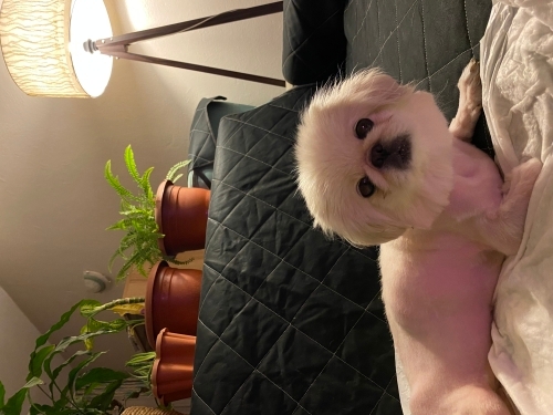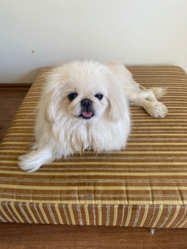 Luka kardeşiyle beraber eski sahibi tarafından sokağa atıldı. Arka ayakları tutmuyor, fizik tedavi ve ameliyat da fayda etmedi. Çişini tutamadığı için bezleniyor. Yürüteci var, yürüteciyle çok güzel koşuyor. Bir süredir geçici yuvada ve yuva arıyor. İnsanlarla arası iyi, sevilmeyi çok seviyor. Dişi, kısır 7-8 yaşlarında
