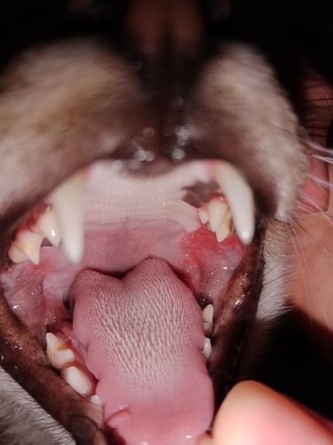 Selam arkadaslar tahminimce kedimde uzun zamandır böyle bi diş eti kızarıklıgı var sağ tarafta minik minik kırmızı noktalar vardı ilk başta