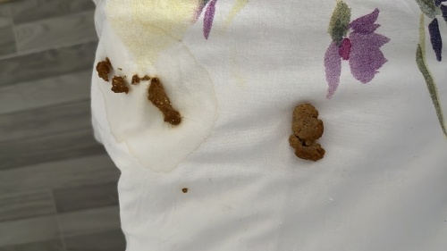 Bunları veterinere götürün incelensin tekrar baktım 3 fotoğrafta da iç parazit gibi şeyler var beyaz olanlar mama değil