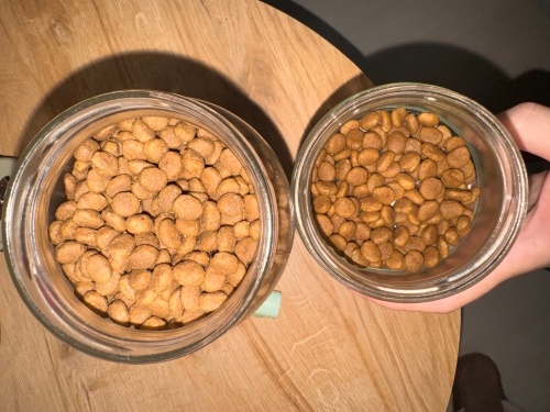 Basık ve koyu olan biten mamamız diğeri yeni ama ikisinin de paketleri aynı, yenilenmiş paket değil
