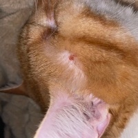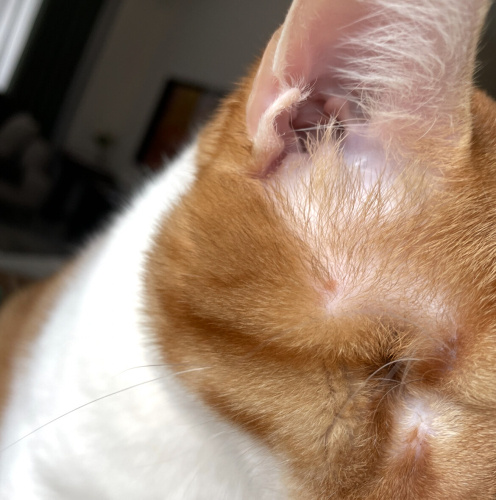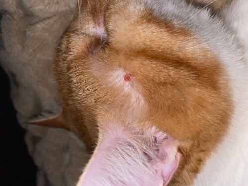 Arkadaşlar merhaba, 6 kasımda kedimin kulağının altında bir kızarıklık fark ettim size 6 kasım tarihli ve şimdiki haline ait 2 görsel koyacağım. Sizce bu alerjik bir reaksiyon ya da mantar olabilir mi? Belki de tırnak sürtmesi bilmiyorum. Bölgeyi kaşıdığını hiç görmedim vücudunun başka bir yerinde de böyle bir yara yok. Bildiğimiz bir besin alerjisi de yok bu zamana kadar hiç böyle bir şey olmamıştı. Bu arada yara çok ince kabuklandı ve kabuk kendi kendine düştü