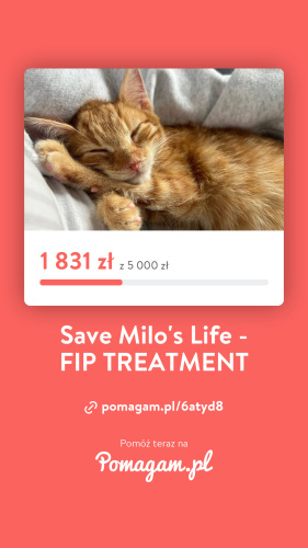 Selamlar. Yavru kedim Milo’nun FIP tedavisi icin yardim topluyorum. Yardimci olursaniz ya da tanidiklarinizla paylasabilirseniz cok sevinirim🥺 Kucucuk bir yardim, sevdiklerinizle paylasim bile Milo’nun hayatini kurtarabilir. Yardim platformuna bu linkten ulasabilirsiniz: pomagam.pl/6atyd8