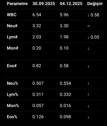Wbc değeri 5.96 çıktı ve veterinerimiz 1 hafta vetqom verelim sonra tekrar hemogram bakalım dedi