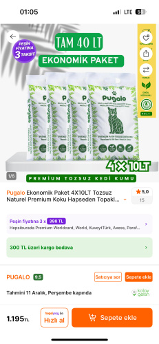 arkadaşlar ben buldummm öneri için yazdım topaklatmasından çok memnun kaldım koku yok toz sıfır kedim sevdi hatta içinden çıkmadı bir süre tek sorun yapısı hafif etrafa yayılması daha fazla ama bu benim için hiç sorundeğil çünkü her kum dağılıyor pugalo markası daha yeni çıktı sanırım suzinin önerisi ile aldım çok sevdim kendim ve kedimin sağlığı açısından bir şans verin derim