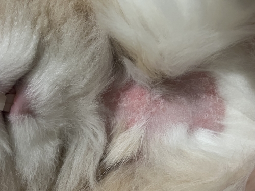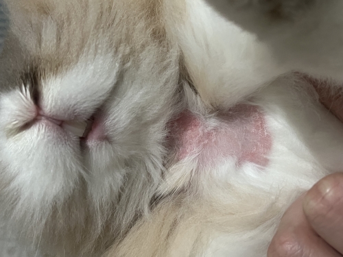 Alerji, egzama, mantar gibi çok fazla seçenek var. Kliniğe götürüp mavi ışıkla bakmasını isteyin. Mantarsa gözükür ilaç verilir. Değilse alerji veya egzamadır. Size en doğru bilgiyi hekim verecektir. En kısa sürede kliniğe götürmenizi tavsiye ederim.