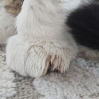 Çok belli olmuyor ama beyaz olan patisinde biraz görünüyor.