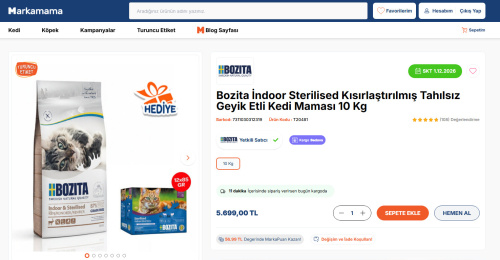 Mar k a m-a m*a sitesinden 8-9 ay önce aldığım BOZİTA mamaya 3100 tl ödemişim fakat ne haldirki bu sitemiz bozitanın türkiyede fazla satışta olmadığı almak isteyen arkadaşların sadece onlardan alabileceğini anlamış ve 8 ay gibi kısa süre geçmesiyle mama fiyatını 5700TL olarak güncellemiştir sizden ricam lütfen bu siteden bir şey alırken 2 kere düşünün bunun gibi fırsatçı yerlerden alışveriş yapmamanızı rica ediyorum Am- a zon gibi fiyatlarının ve ürünlerinin arkasında duran firmaları tercih ederseniz sevinirim yarın öbür gün sizin kullandığınız mamayada aynı fiyat tarifesini yaparlarsa şaşırmayın
