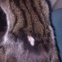 Sizin kedinizdekiyle neredeyse aynı yara izi benimkinde de var; ancak benimkinin yarası kızarık ve kabuk bağlamış durumda.