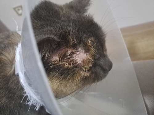 Merhaba mor ışıkla bakıldı mı? Mantar kültürü testi alındı mı? Mantarın türü belli ise veteriner ekosilin verir. İğne yaptırmayın o çözüm olmaz ki hele aşı çok tehlikeliymiz bize veterinerimiz dedi.