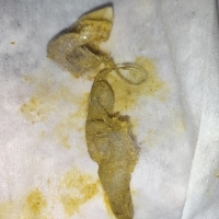 bunlar parazit büyük ihtimalle internette dıskıyla olan görüntüleri var ama bu da aynısına benziyor ne olur ne olmaz bir veterinere götür iç dış parazitlerini de aksatma